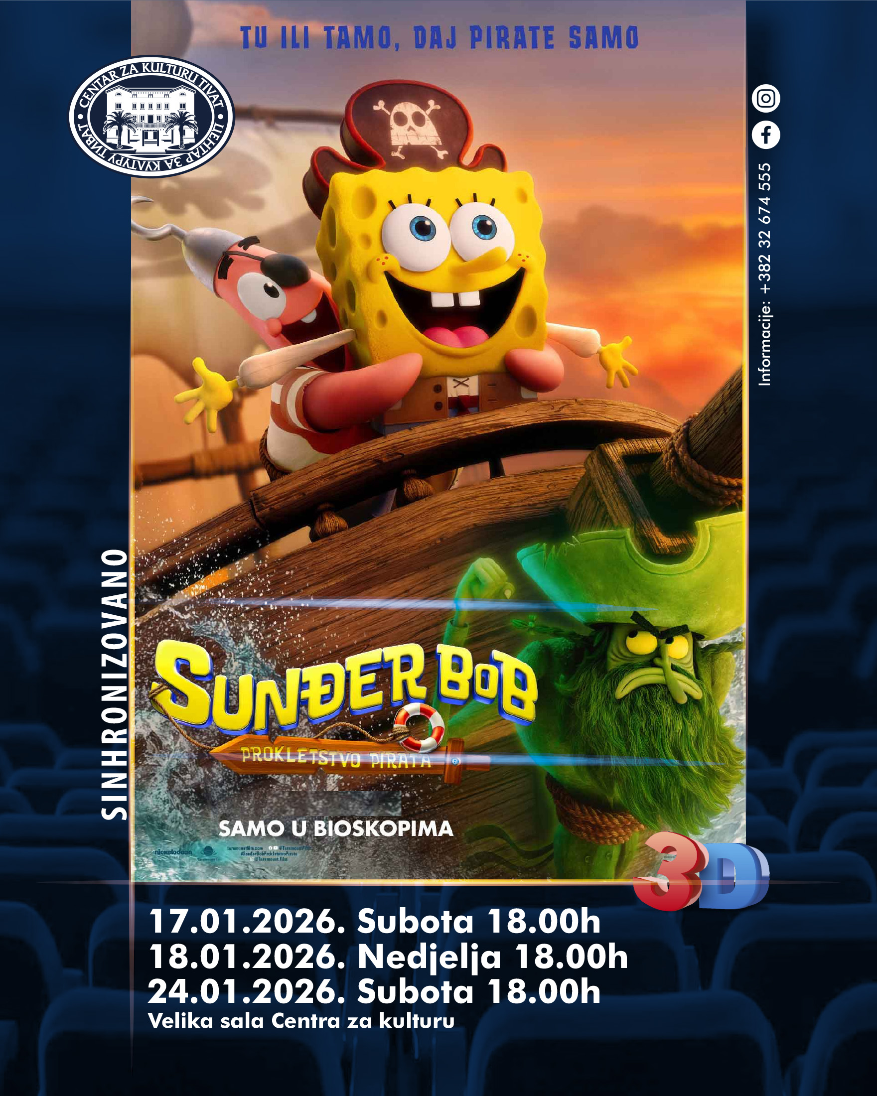 Сунђер Боб и његови пријатељи из Коралова крећу на пловидбу у свом највећем, потпуно новом и незаборавном филмском спектаклу „Сунђер Боб – Проклетство пирата“.