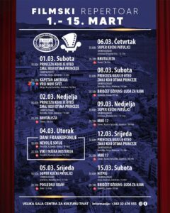 Филмски репертоар 01. – 15. МАРТ 2025 – Велика сала Центра за културу Тиват