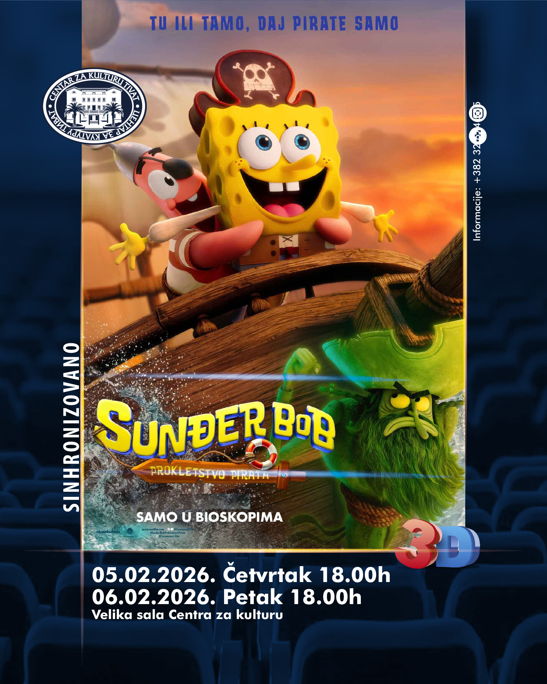 Sunđer Bob i njegovi prijatelji iz Koralova kreću na plovidbu u svom najvećem, potpuno novom i nezaboravnom filmskom spektaklu „Sunđer Bob – Prokletstvo pirata“.