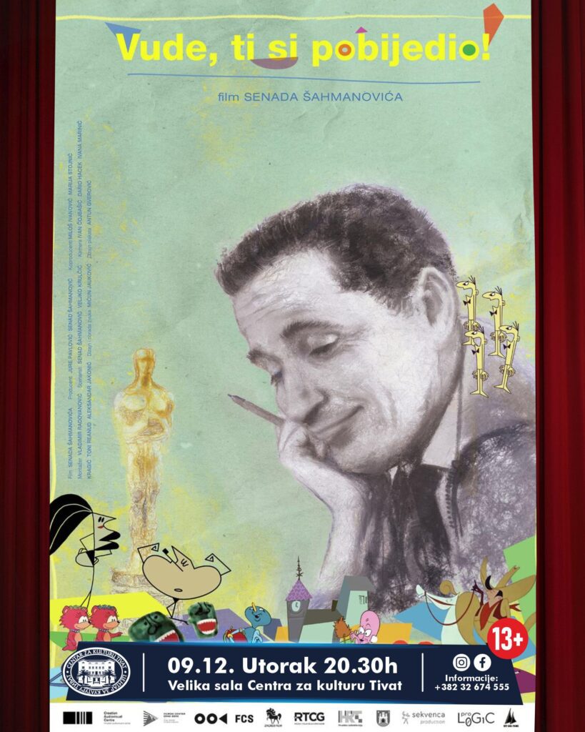 Mreža kinoprikazivača Crne Gore sa ponosom najavljuje decembarski ciklus prikazivanja dokumentarnog filma „Vude, ti si pobijedio!“ reditelja Senada Šahmanovića – jednog od najzapaženijih regionalnih dokumentarnih ostvarenja posljednjih godina, posvećenog Dušanu Vukotiću, jedinom crnogorskom dobitniku Oskara i nezaobilaznoj figuri jugoslovenske kulturne istorije. Ovaj poetski dokumentarni portret vodi gledaoca kroz život i stvaralački put autora čiji je film „Surogat“ ispisao istoriju svjetske animacije, ali i kroz složene društveno-političke okolnosti koje su ga, decenijama kasnije, gurnule na marginu. Kroz pažljivo odabrane arhivske snimke, intimne vizuelne sekvence i glasove njegovih savremenika, Šahmanović gradi narativ o trijumfu stvaralačke vizije, o epohi koja je nestala i o čovjeku koga je nacionalistička atmosfera devedesetih brutalno izbrisala iz sopstvene kulturne realnosti.